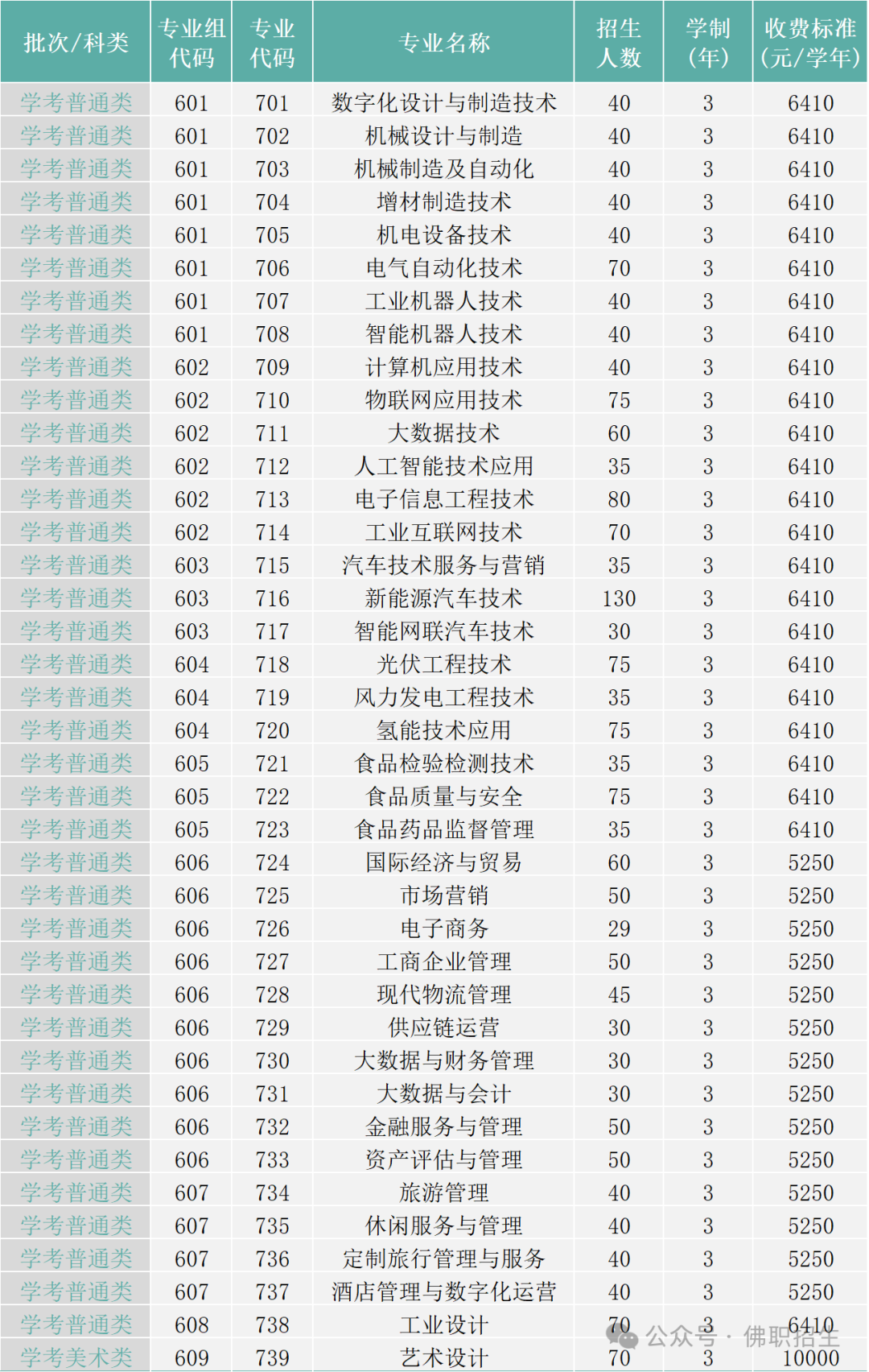注:1.以上招生计划仅供参考,最终以2024年广东省春季高考招生专业目录为准;2.办学地点:佛山市三水区;3.住宿费:1700 元/学年。