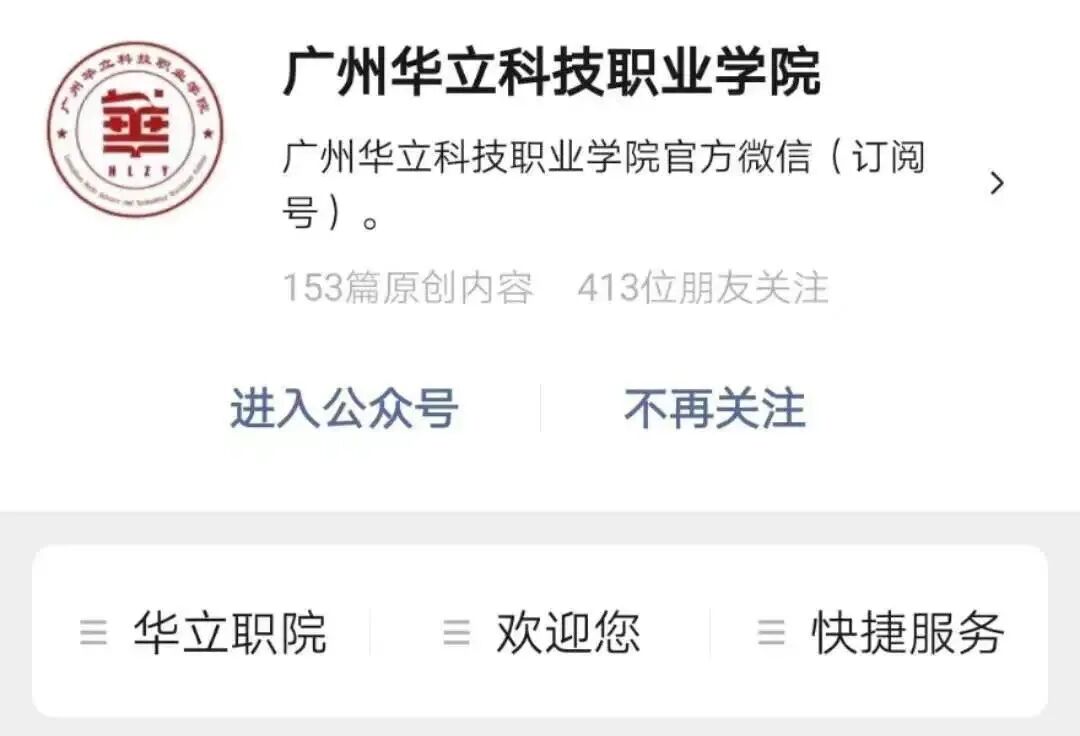 “广州华立科技职业学院”官方公众号是唯一新生注册缴费登录入口,其它任何平台均未获得学校授权;请同学们要谨慎!