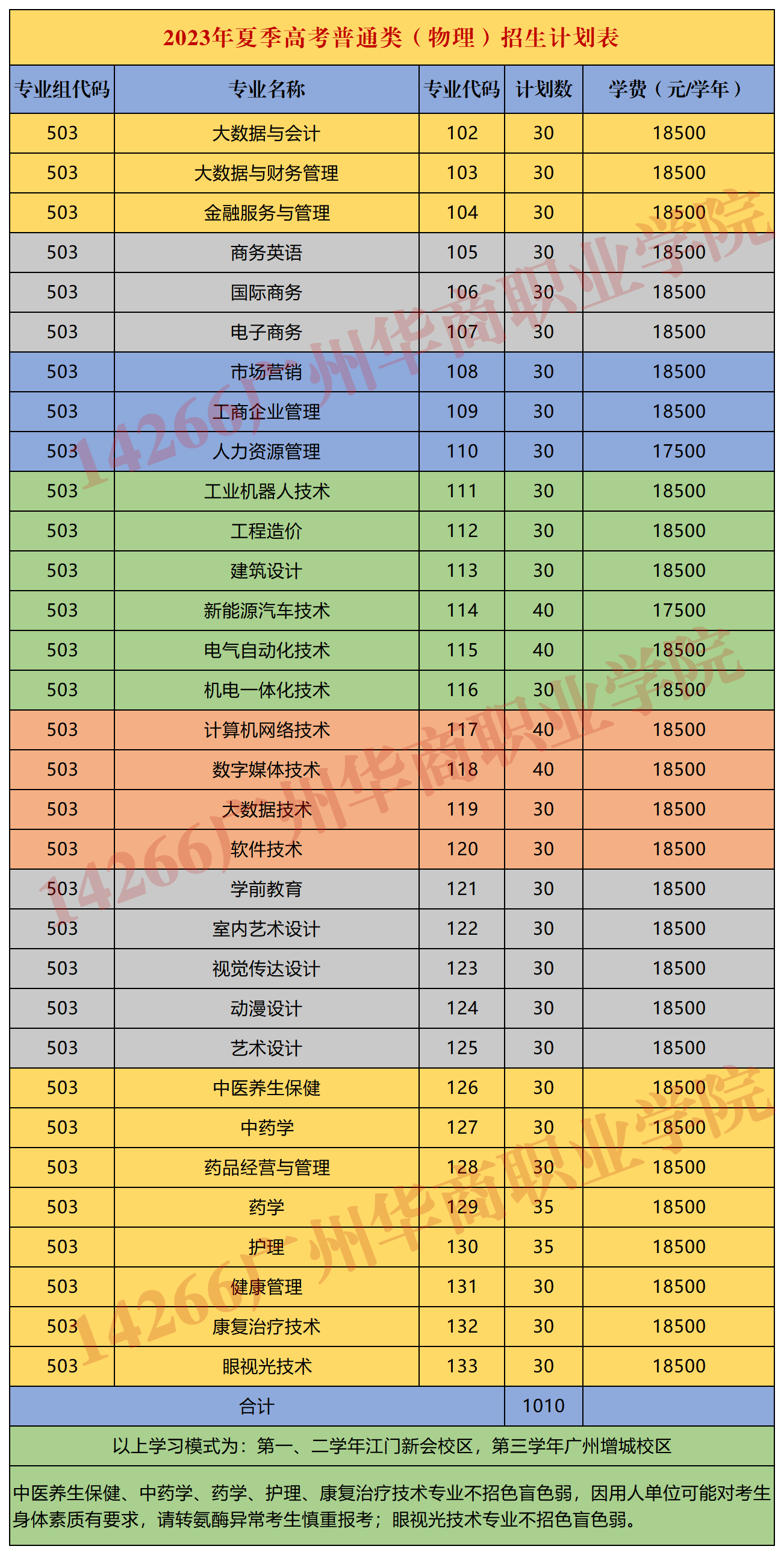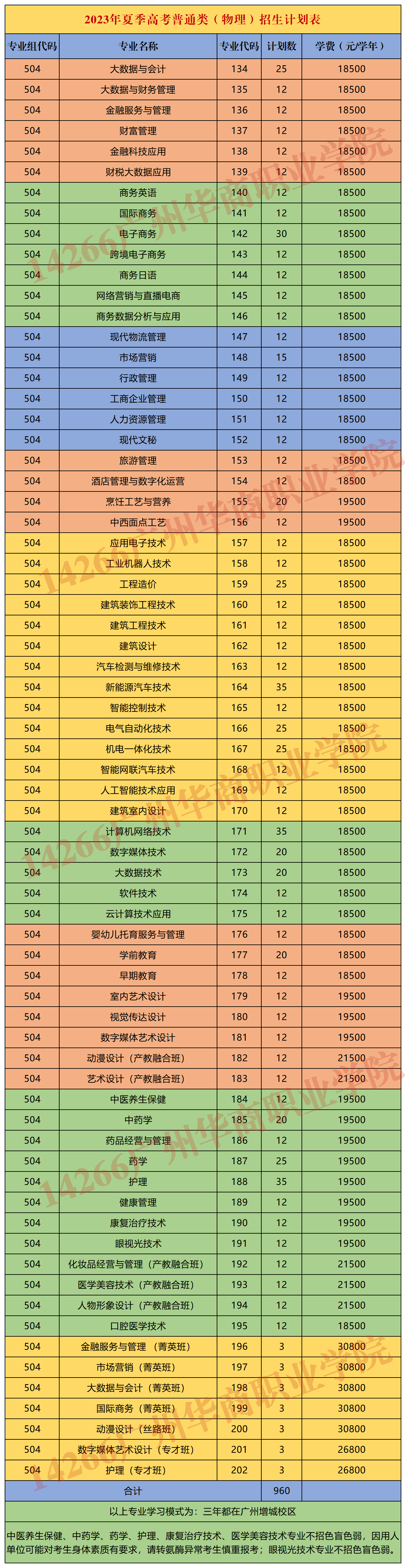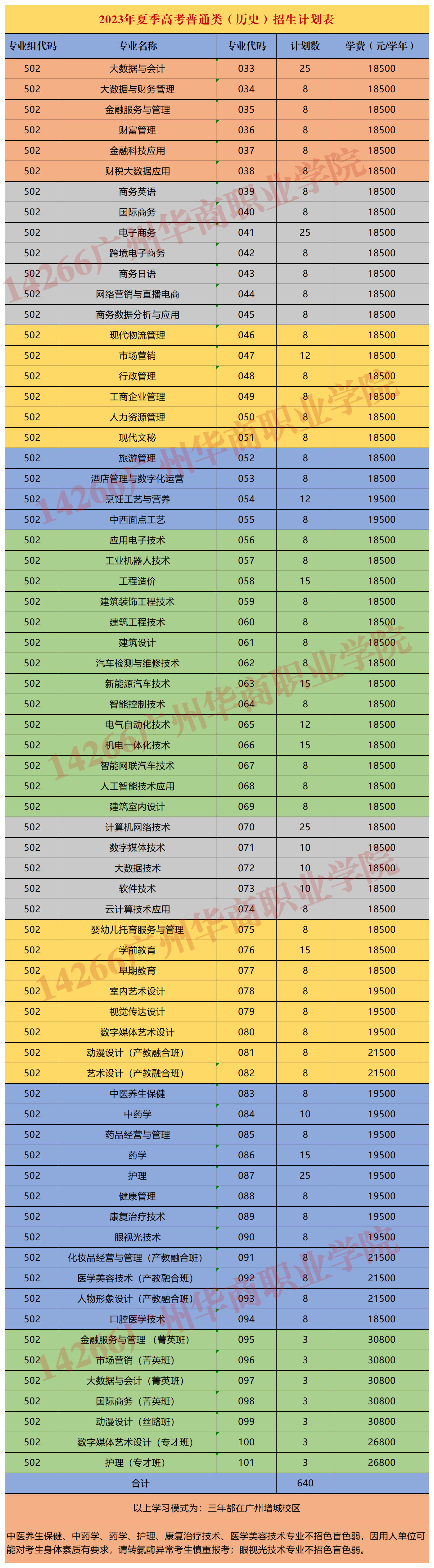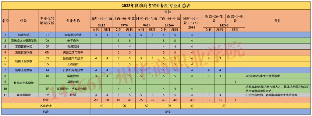 广州华商职业学院2023年夏季高考招生计划