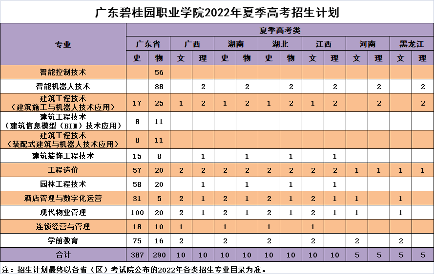 招生网招生动态招生简章录取查询招考通知优秀毕业生联系我们普通高考学考3+证书三二分段新生入学指南宣传视频普通高考你的位置:首页>招生网>普通高考广东碧桂园职业学院2022年夏季高考招生计划时间:2022-05-09 来源: 作者: 【打印文章】【关闭窗口】 上一篇:广东碧桂园职业学院2021年夏季高考录取名单(2) 下一篇:广东碧桂园职业学院2022年夏季高考招生章程