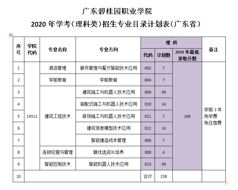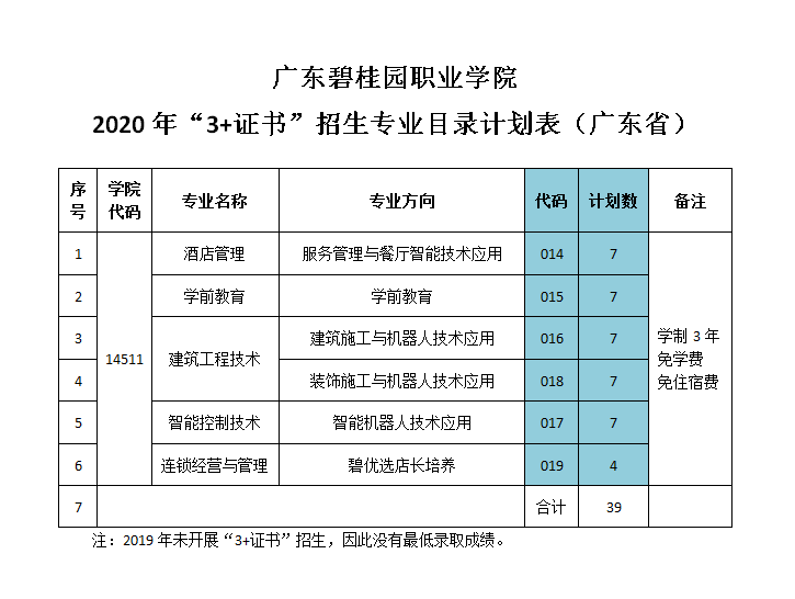 招生网招生动态招生简章录取查询招考通知优秀毕业生联系我们普通高考学考3+证书三二分段新生入学指南宣传视频学考你的位置:首页>招生网>学考广东碧桂园职业学院2020年春季招生专业目录计划表(广东省)时间:2020-03-17 来源: 作者: 【打印文章】【关闭窗口】 上一篇:来了来了!这所全免费大学带着2020年春季招生计划来了! 下一篇:关于公布我院2021年春季高考录取新生的录取通知书快递单号的公告