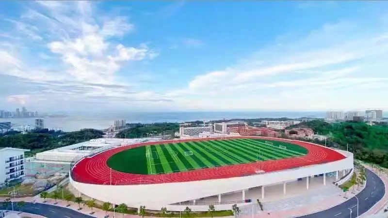 学校配套空中运动场,标准400米跑道,跑步踢球能看海、4公里的环校园校道、无边际游泳池、篮球场、健身房等运动设施齐全。
