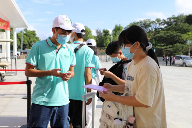 在汕头站,我们的迎新小分队早已等候在出口站前广场,迎接着同学们的到来。志愿者们在迎新点举着带有我校特色标志的牌子,在确认身份、核查粤康码与核酸检测报告之后,带领同学们来到校车大巴处,统一乘坐校车返回校区。