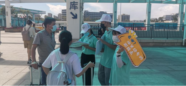 丹桂飘香,风朗气清,正是一年迎新时。9月23日上午8时,广东汕头幼儿师范高等专科学校迎来了第一批的新生。一张张热情的面庞,一句句亲切的问候,一项项贴心的服务,欢迎着来自各地的莘莘学子。由于学校首次开学迎新的特殊性,在正式开学之前,一群青春活跃的新生积极提前报名成为迎新志愿者,经过学校老师的正式培训之后,今天,这一批志愿者正式“上岗”,协助新生入学报到工作,成为了幼高专一道靓丽的风景线。