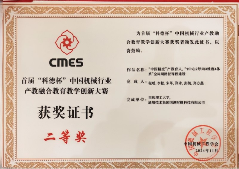 近日,由中国机械工程学会、中国机械行业卓越工程师教育联盟主办的首届中国机械行业产教融合教育教学创新大赛在浙江大学举行,全国140所高校和400余家企业参加。经过激烈角逐,学校作为第一完成单位的两项作品,《产教融合、项目驱动、数字赋能—高端装备产业卓越人才培养模式创新与实践》和《“中国精度”产教育人,“1中心2导向3维度4体系”全周期路径课程建设》分别获得本科组体系类一等奖和本科组课程类二等奖。