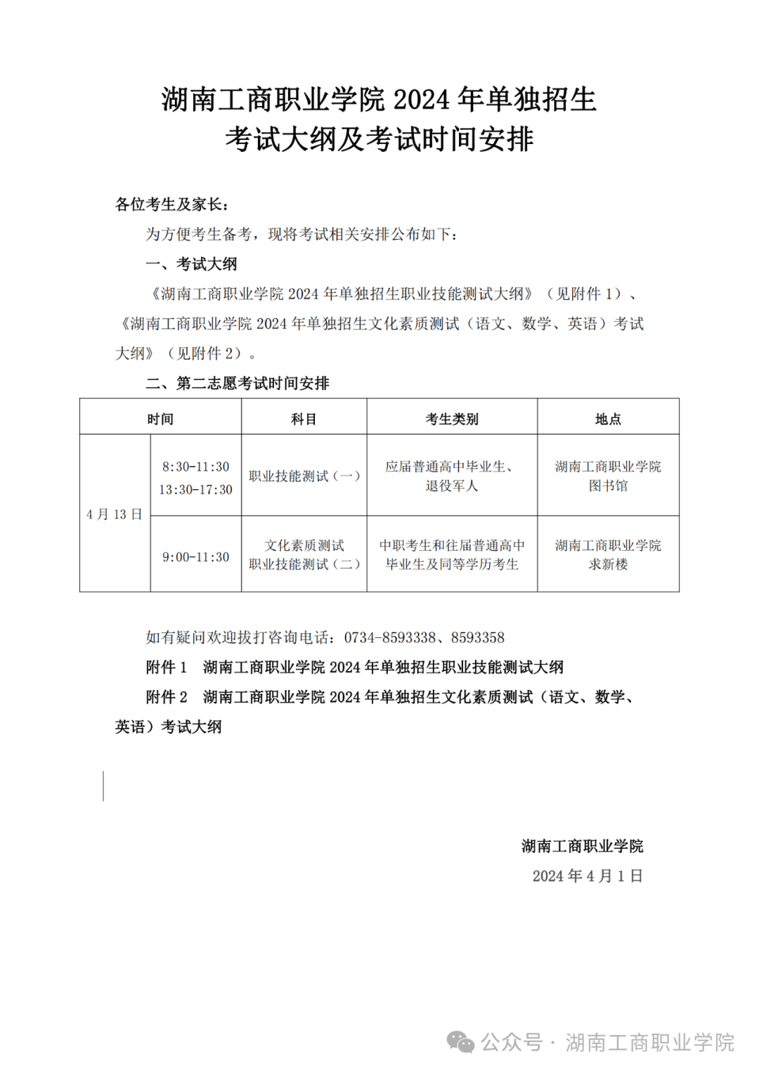 准考证打印时间及方式,请关注“湖南工商职业学院”微信公众号通知。