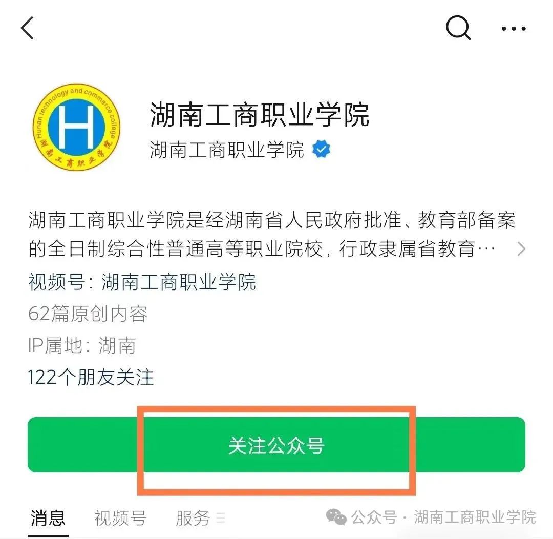 ①微信搜索公众号“湖南工商职业学院”,点击关注。