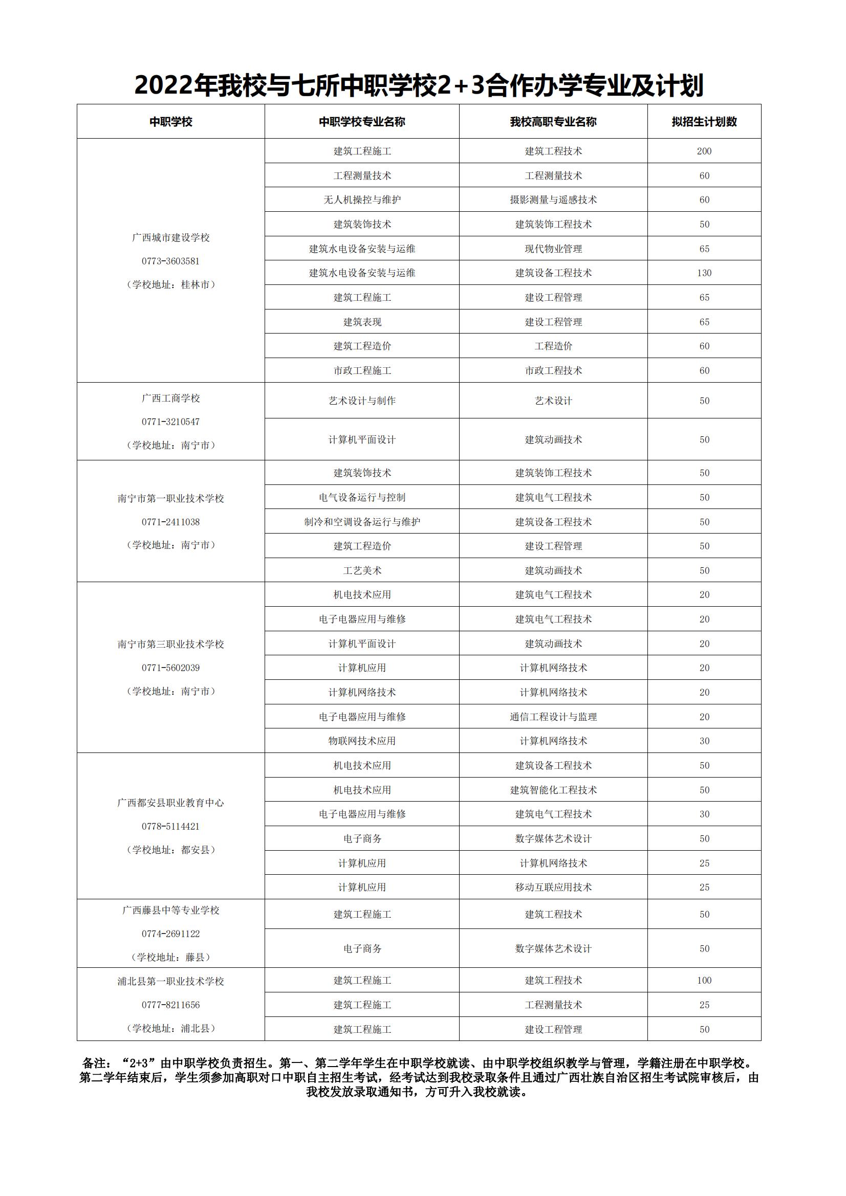 2022年我校与七所中职学校2+3合作办学专业及计划