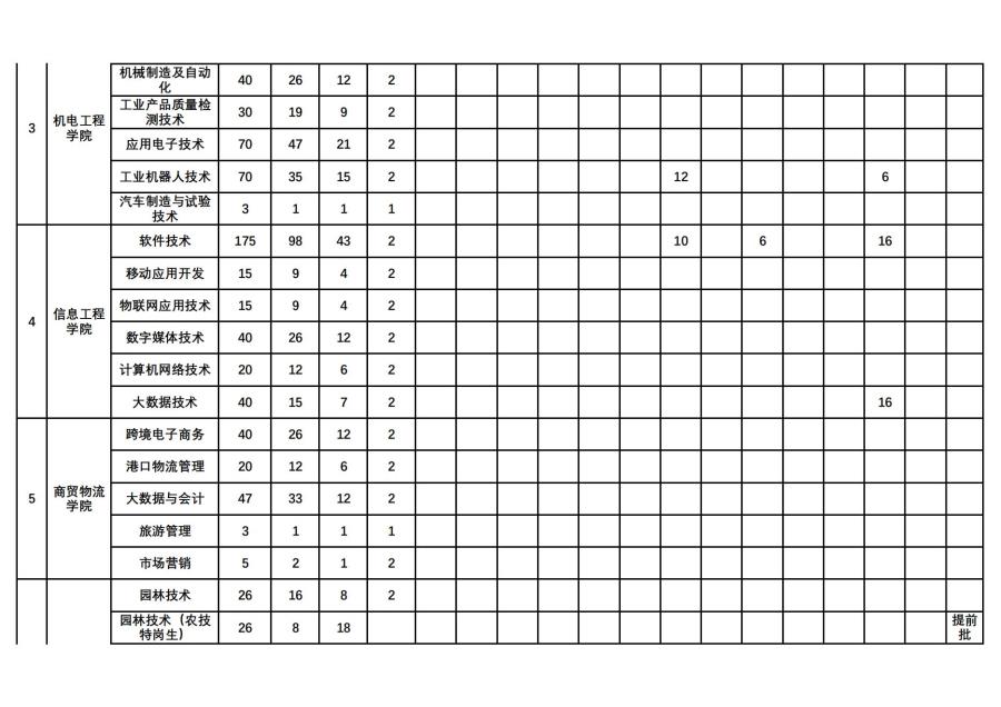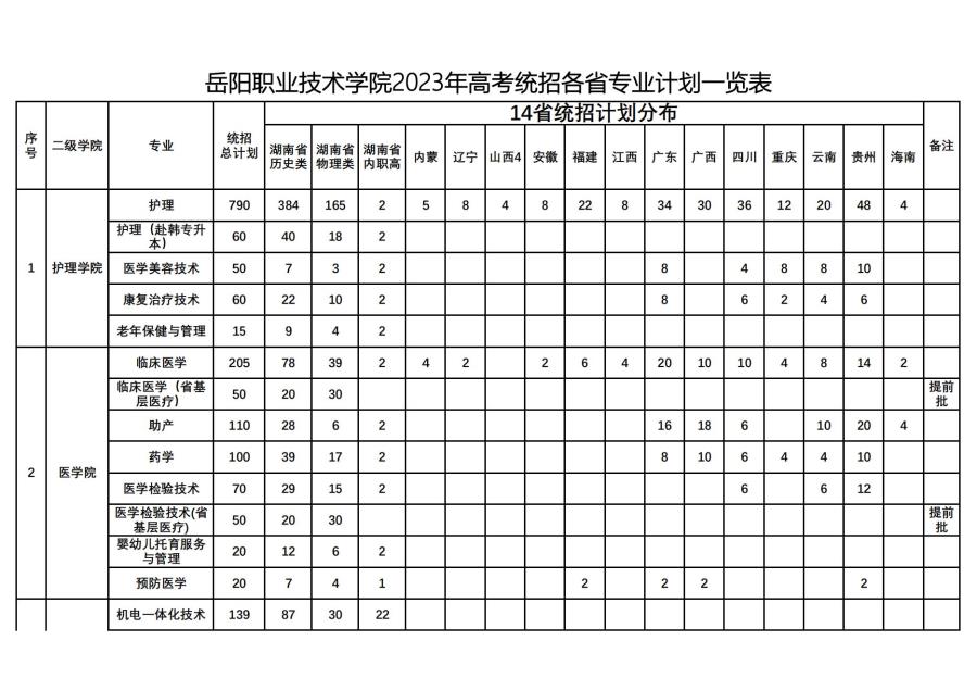 岳阳职业技术学院2023年高考统招各省专业计划一览表