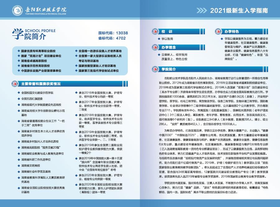你好!恭喜你被岳阳职业技术学院录取!为帮助你安全、顺利地报到入学,学校制定了详尽的《2021年新生入学须知》,请你在开学前一定认真阅读,提前准备入学所需的各种手续与注意事项。