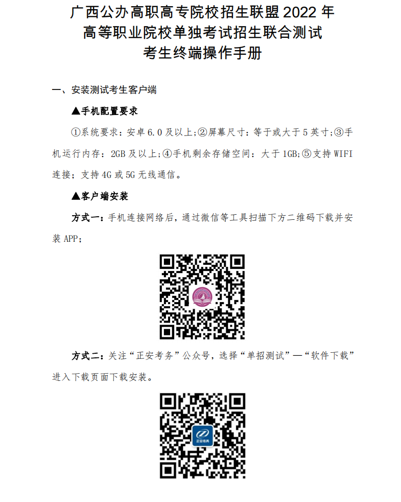 广西公办高职高专院校招生联盟2022年高等职业院校单独考试招生联合测试考生终端操作手册
