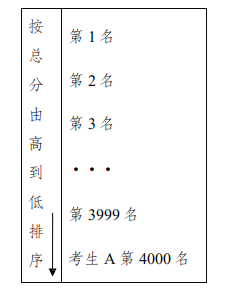 答:具体地说,“平行志愿”投档时可分为两步进行。一是先对考生分科类按总分从高到低排序,分数高的考生先检索投档。比如某理科考生A成绩排在全区全体理科考生的第4000名,需要在该生前面的3999人检索处理完成后,才轮到这位考生(如下图所示)。