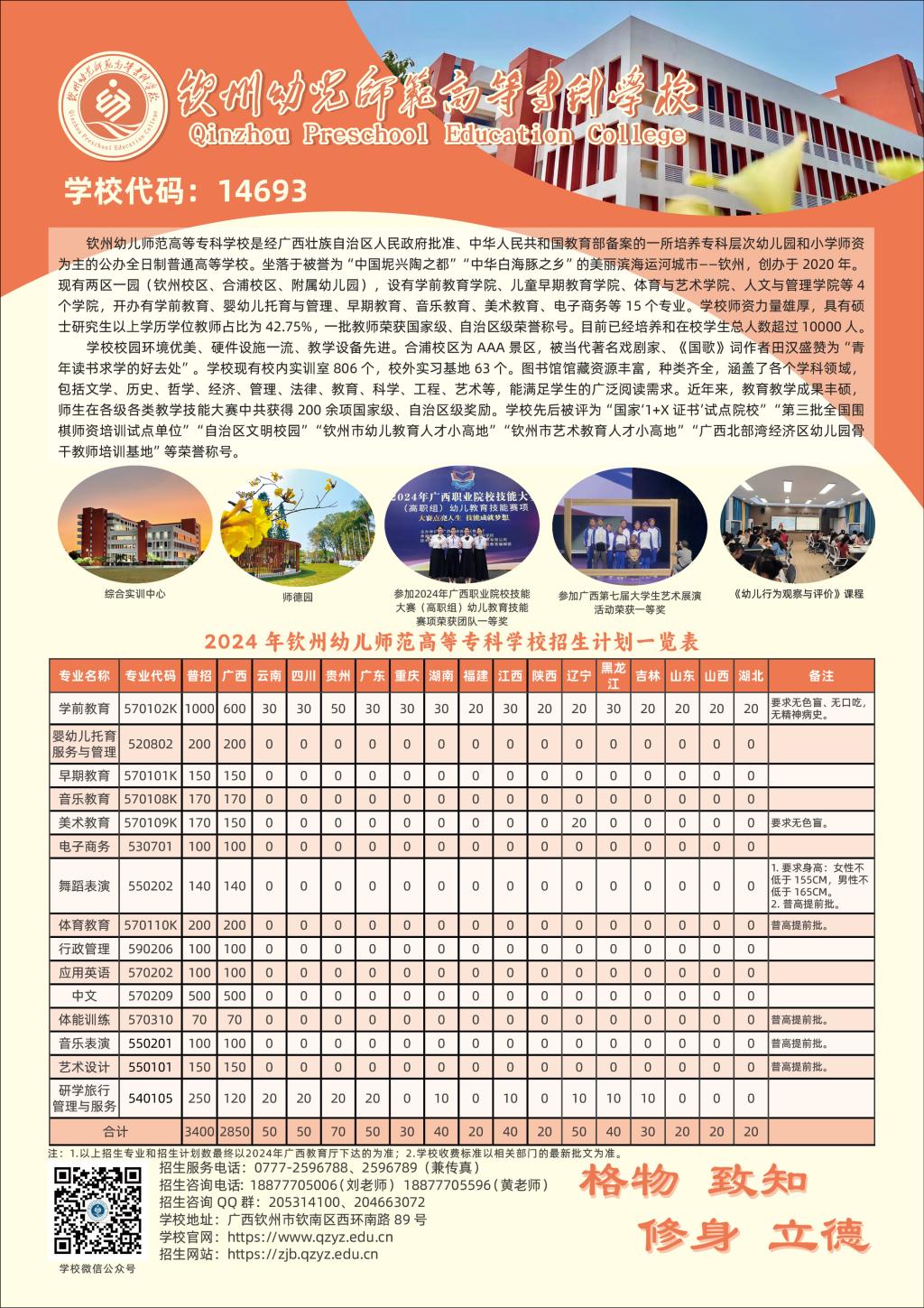 钦州幼儿师范高等专科学校在《高考指南》《招生计划篇》刊登的招生宣传页