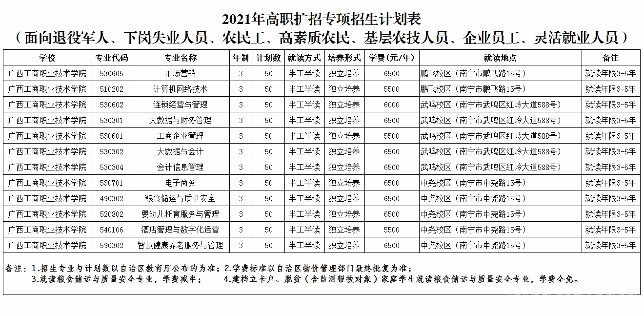 2021年高职扩招专项招生计划表