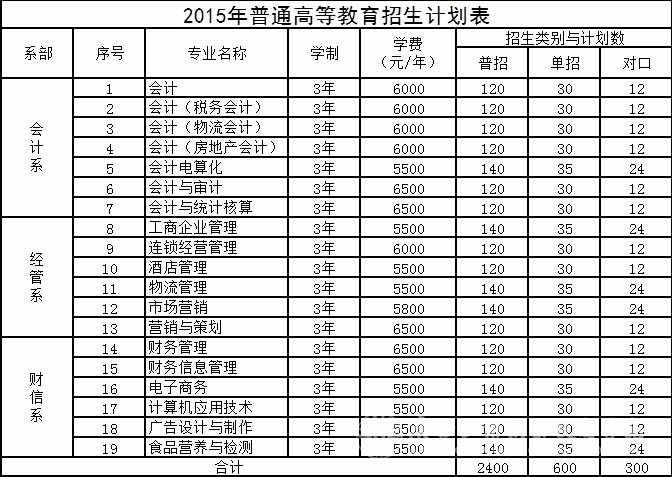 2015年普通高等教育招生计划表