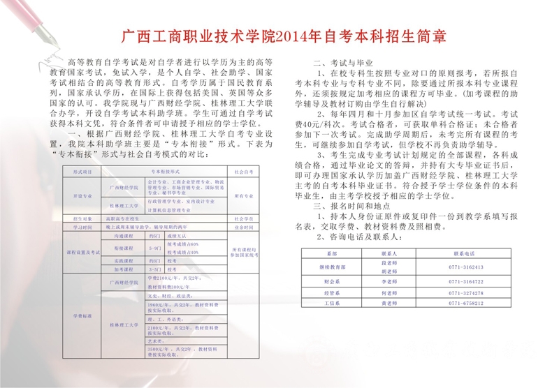 广西工商职业技术学院2014年招生简章