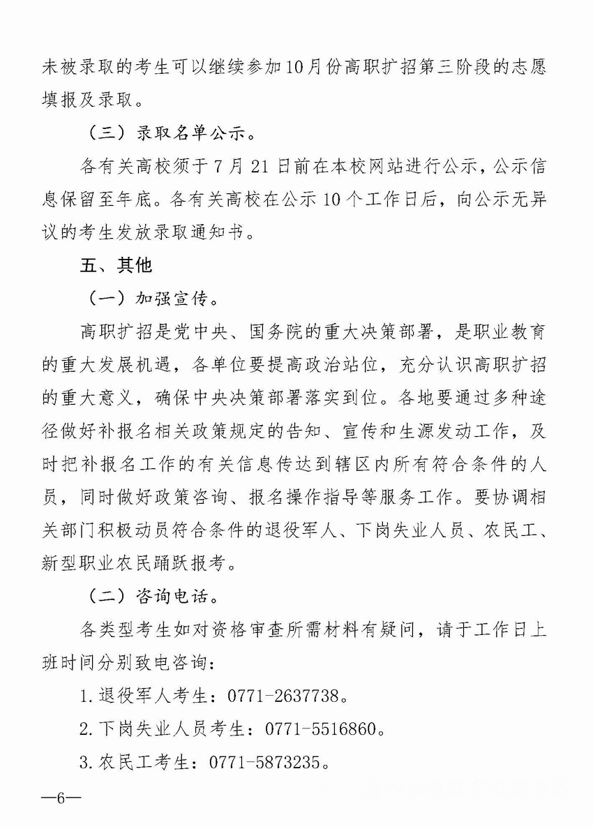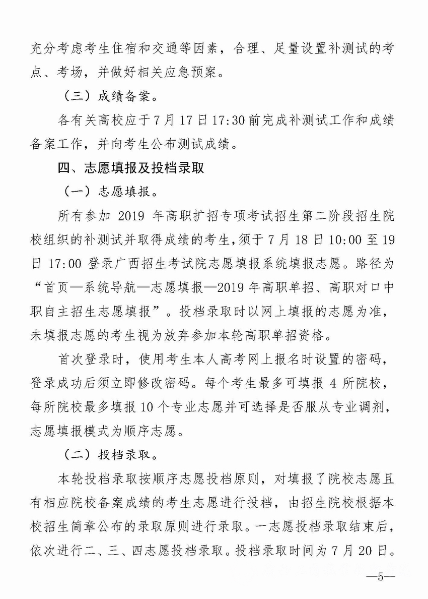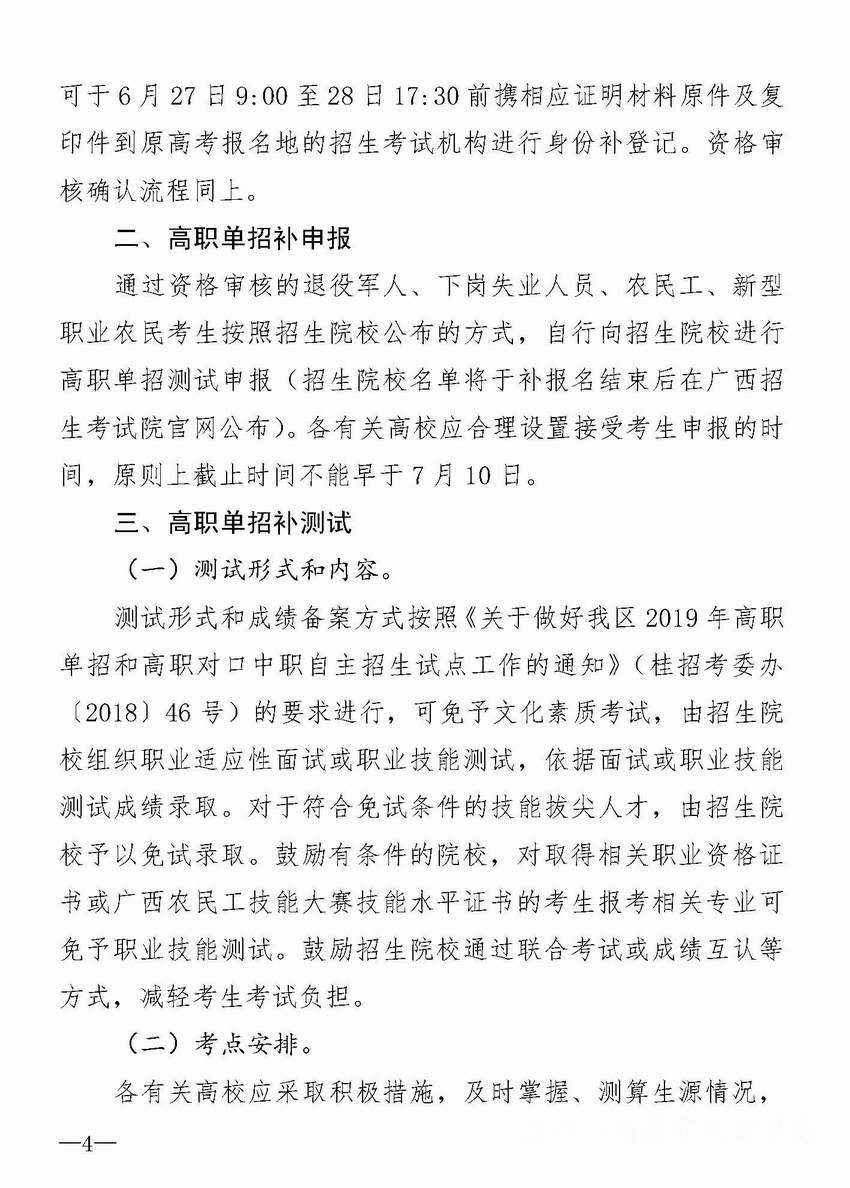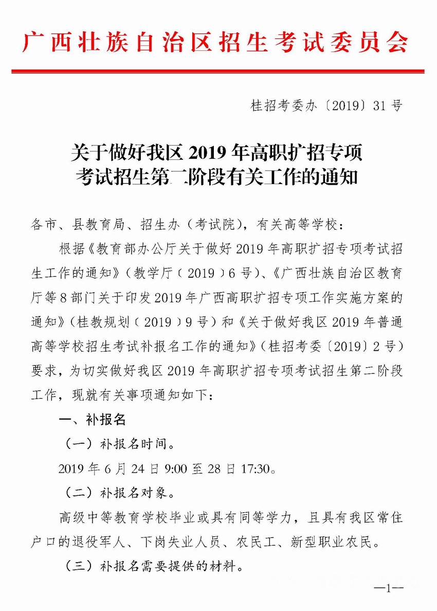 关于做好我区2019年高职扩招考试招生第二阶段有关工作的通知