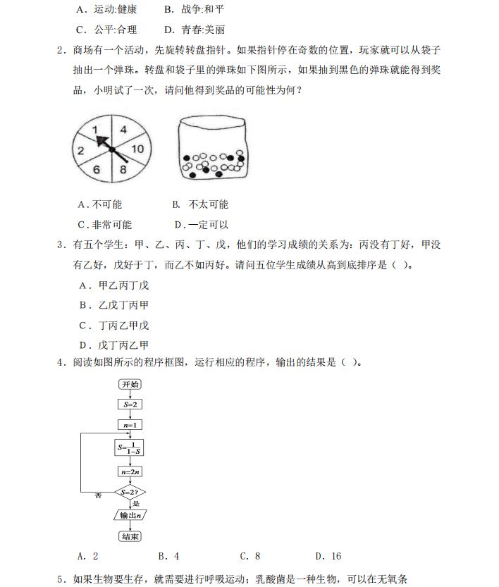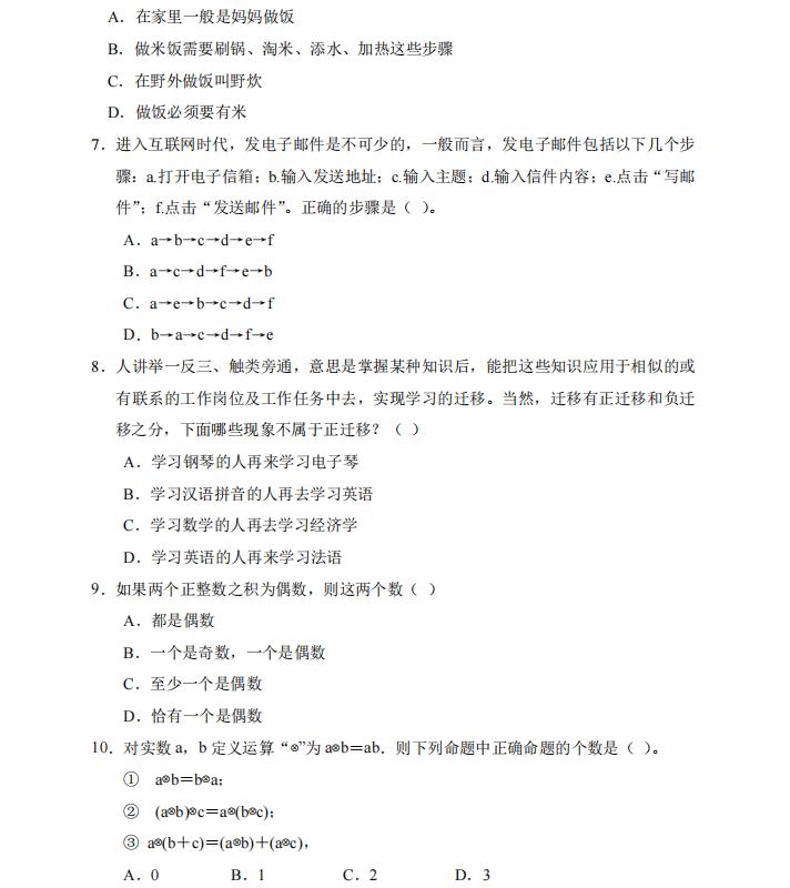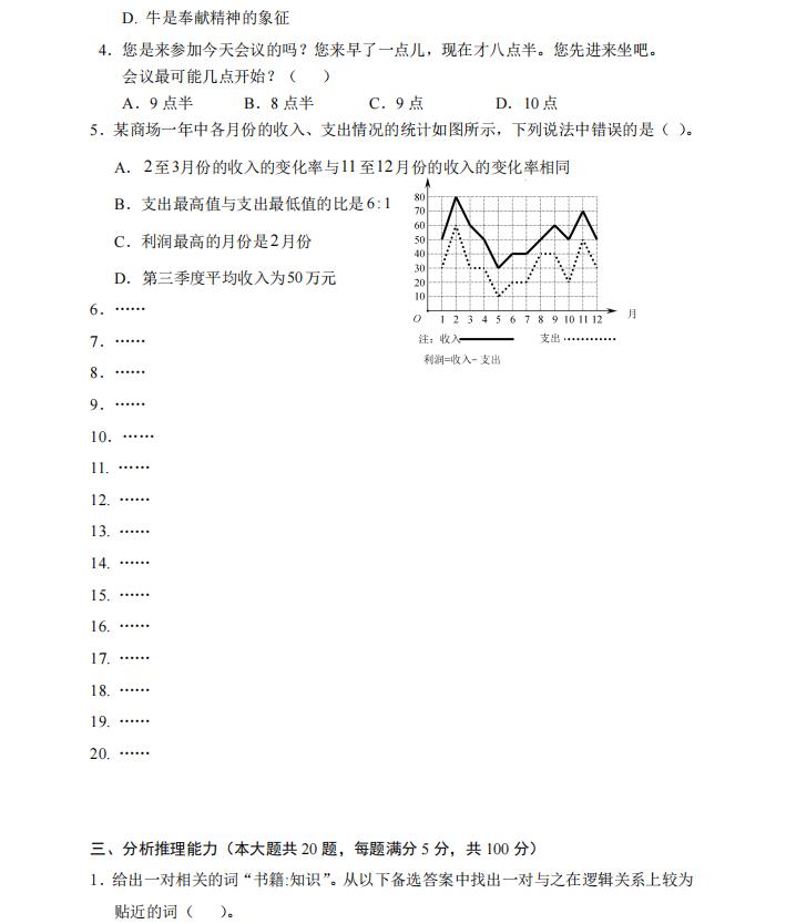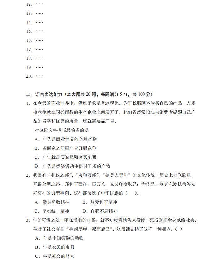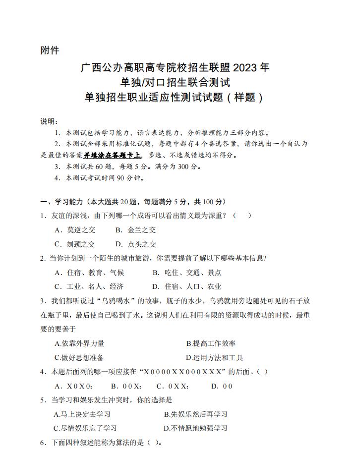 2023年 单独招生职业适应性测试试题(样题)