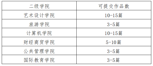 (一)请各二级学院开展相应的主题征文活动,评选出优秀作品后,每个学院遴选规定数量的优秀征文报送学院资助科参加评选,具体安排如下: