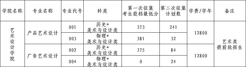 一、艺术提前批第一次征集最低投档分数线及第二次征集计划一览表