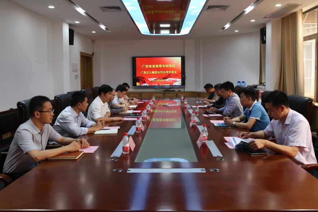胡校长指出,在健康中国战略和体育产业大发展的背景下,我校作为全区唯一一所体育类高职高专院校,在专业和师资方面拥有较大优势,感谢正久集团一直以来的支持,通过此次交流,进一步整合双方的资源优势,扩大合作办学机制,共同为灵山县培养体育产业人才,促进地方体育产业发展。