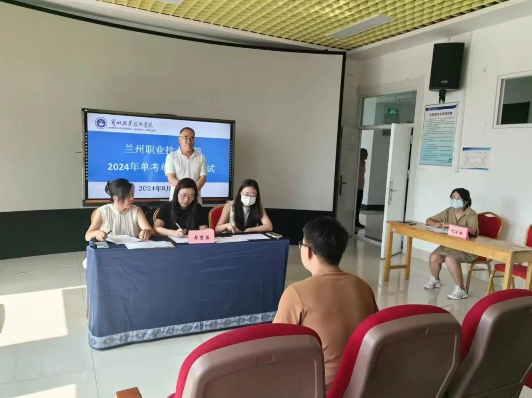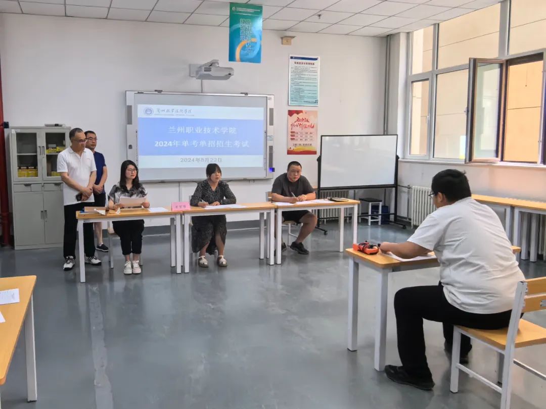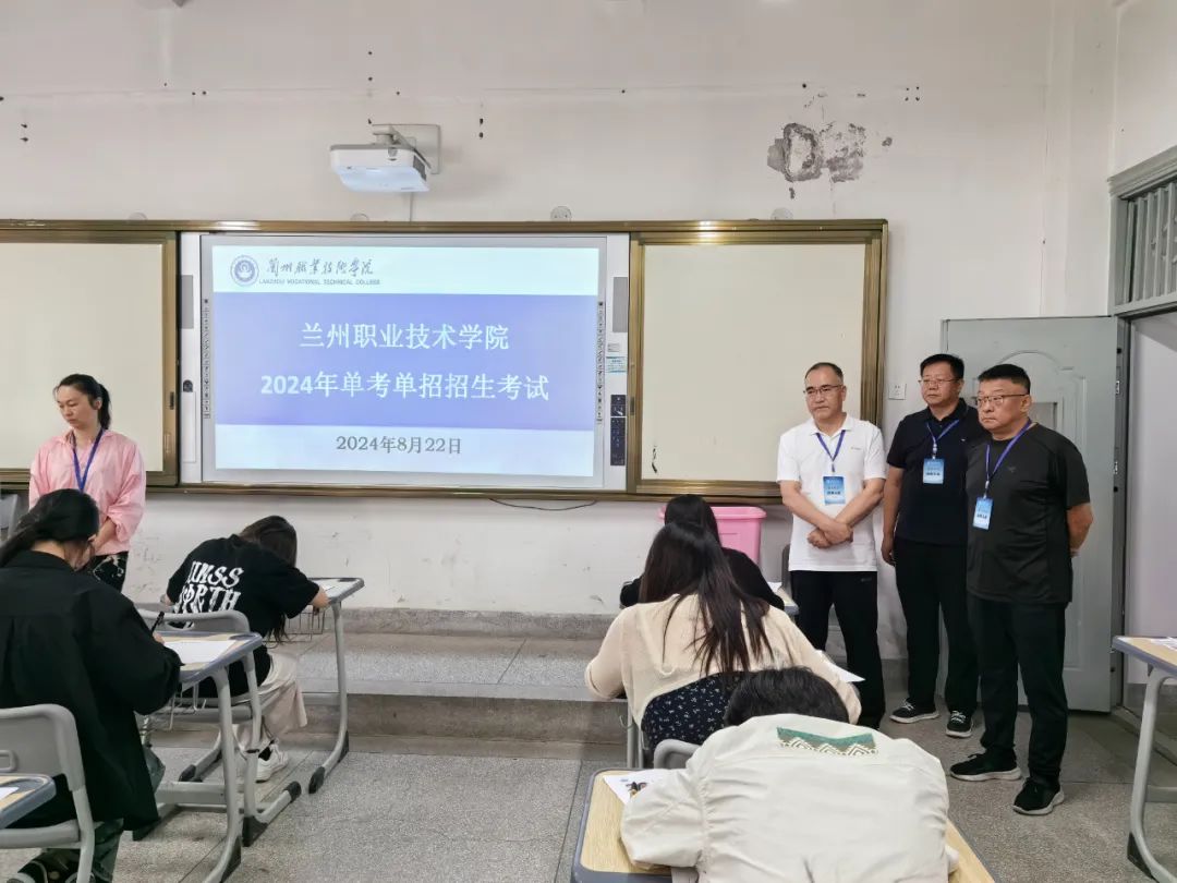 根据省教育厅《关于做好2024年甘肃省高等职业教育分类考试招生工作的通知》文件精神和要求,8月22日,兰州职业技术学院2024年单考单招考试在总校区顺利举行,学院党委副书记、院长宋贤钧,副院长范宏伟在考试现场巡查监督,党政办公室、纪检监察室、招生就业处、教务处及各二级学院相关人员参加。
