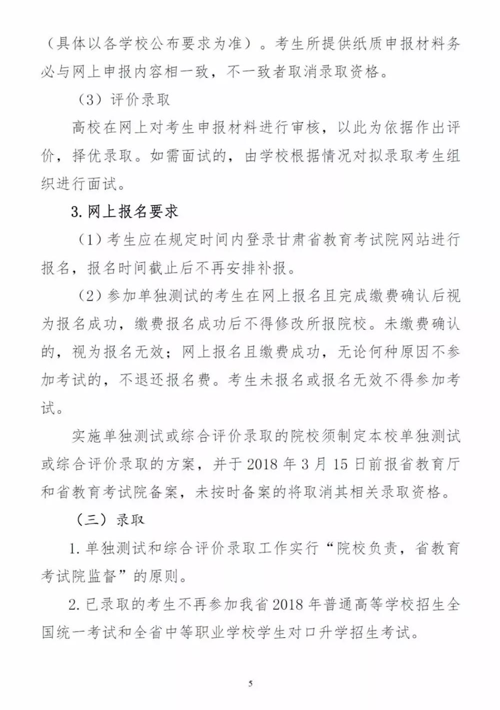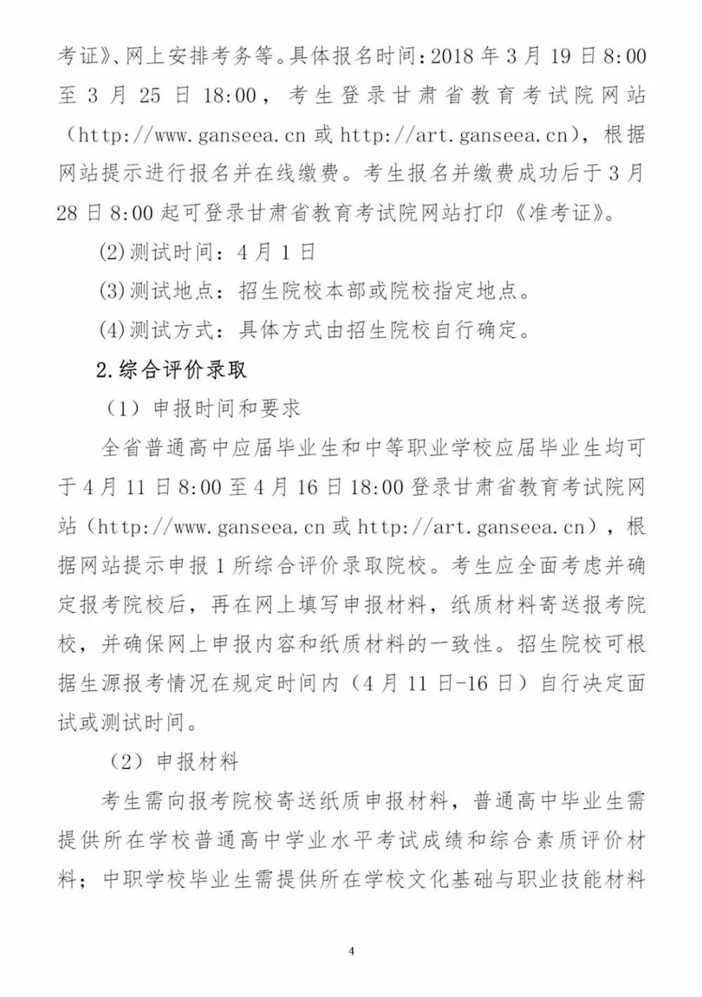 关于做好 2018 年甘肃省普通高校招生高职(专科)层次单独测试和综合评价录取的通知