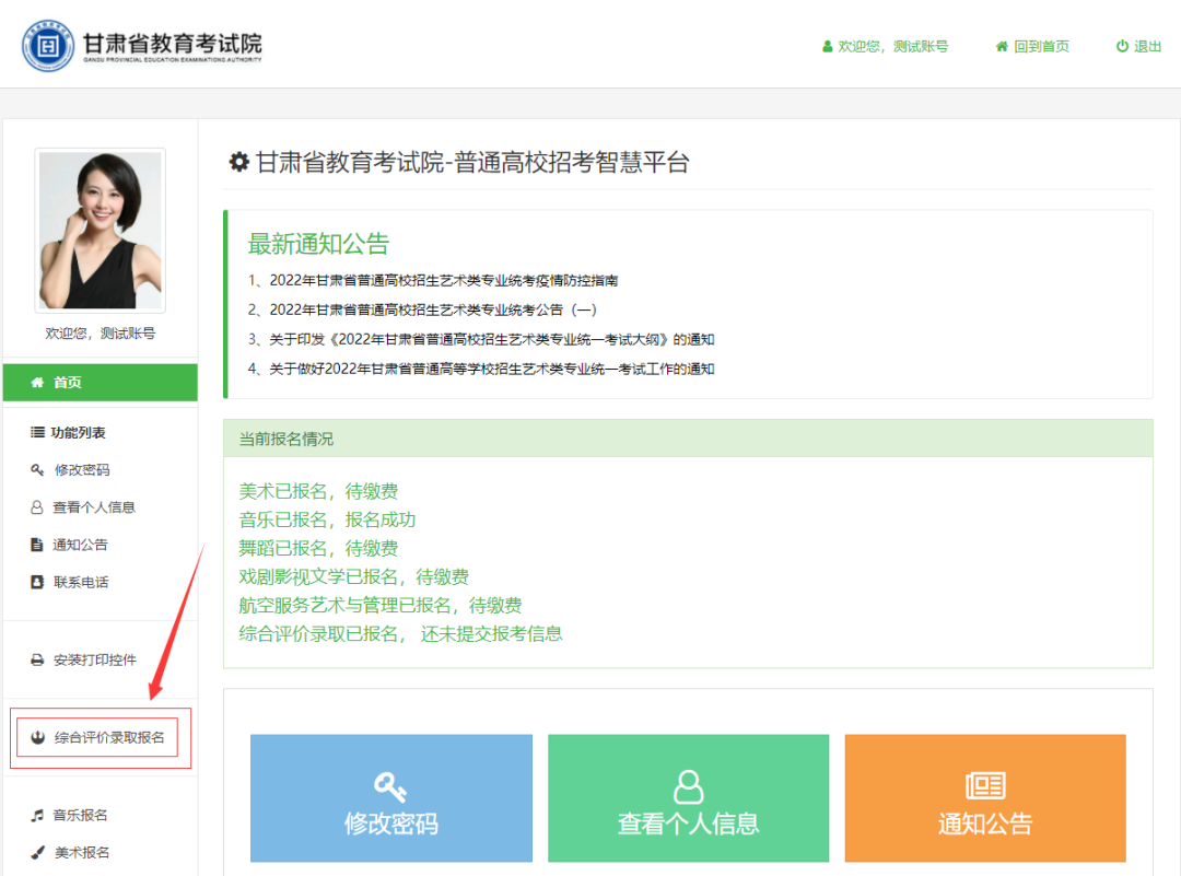 综合评价录取报名采用网上填报志愿,为了使考生能够顺利完成报名,请考生使用电脑进行报名。第一步:登录报名系统第一种登录方式:登录甘肃省教育考试院网站http://www.ganseea.cn或http://art.ganseea.cn