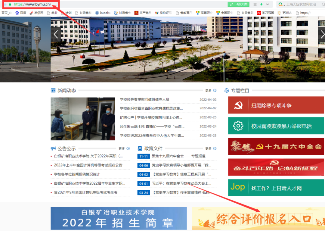 第二种登录方式:登录白银矿冶职业技术学院网站http://www.bymu.cn