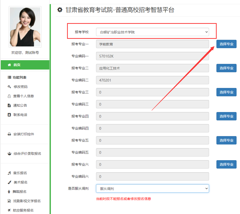 第五步:点击下拉箭头选择“白银矿冶职业技术学院”