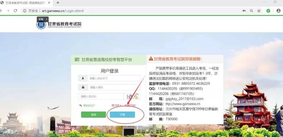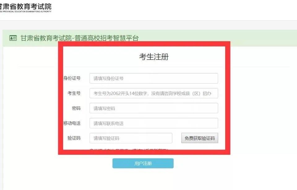 2. 注册:打开“甘肃省普通高校招考智慧平台”后先注册,按照页面提示,填写考生准确信息,完成注册。