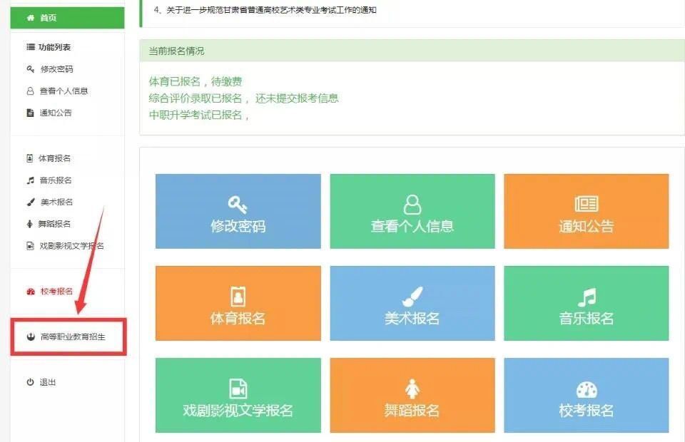 3. 进入界面:登入系统后选择“高等职业教育招生”栏目。