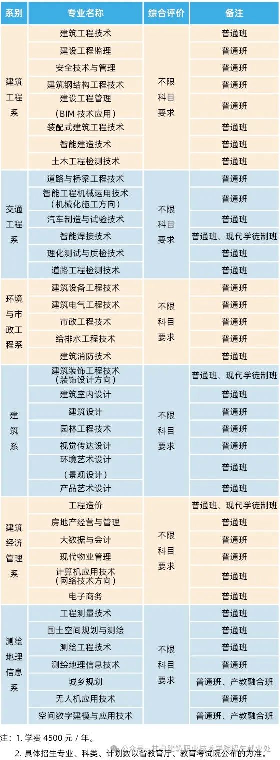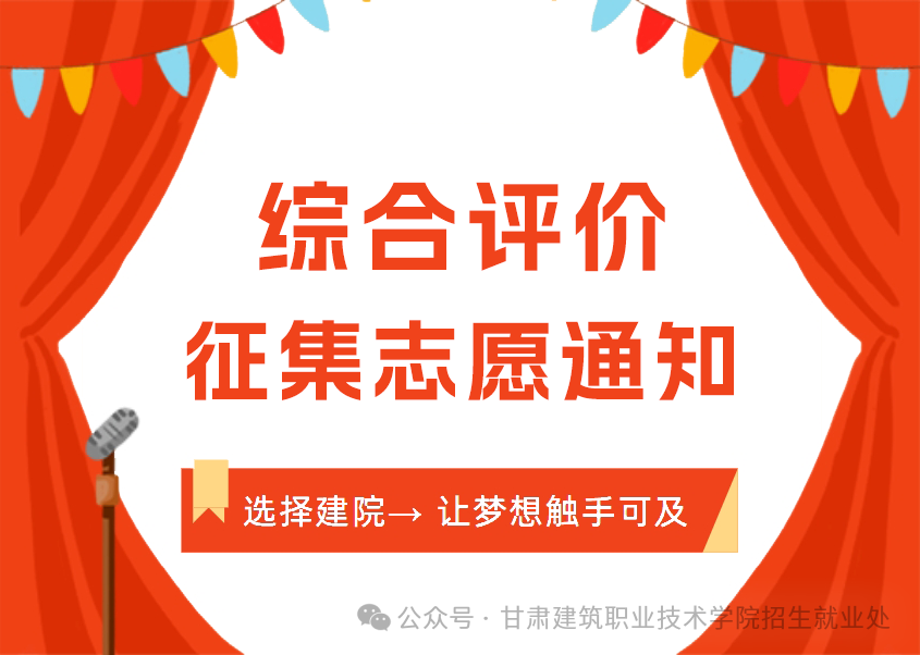 2024年全省综合评价招生定于4月2日8:00至18:00征集志愿,甘肃建筑职业技术学院部分专业尚有招生计划,欢迎符合条件的考生积极报考。