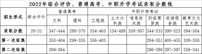 2022年综合评价、普通高考、中职升学考试录取分数线