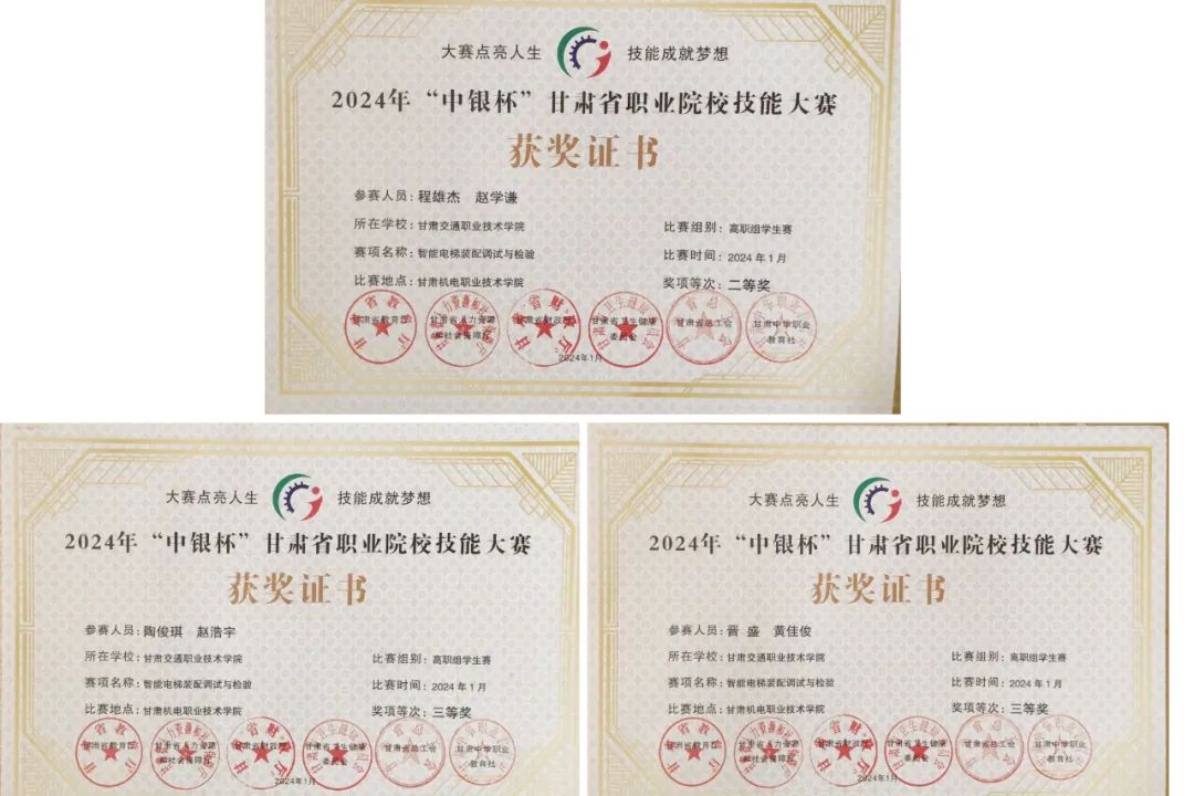 在“智能电梯装配调试与检验”赛项中,获学生组二等奖1项、三等奖2项。