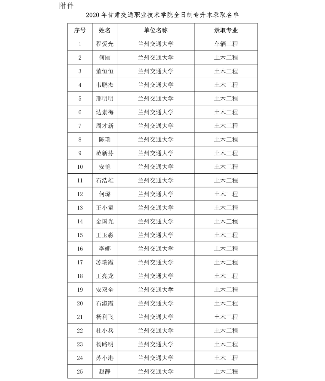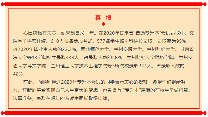 甘交院2020年“普通专升本”考试录取成绩喜人