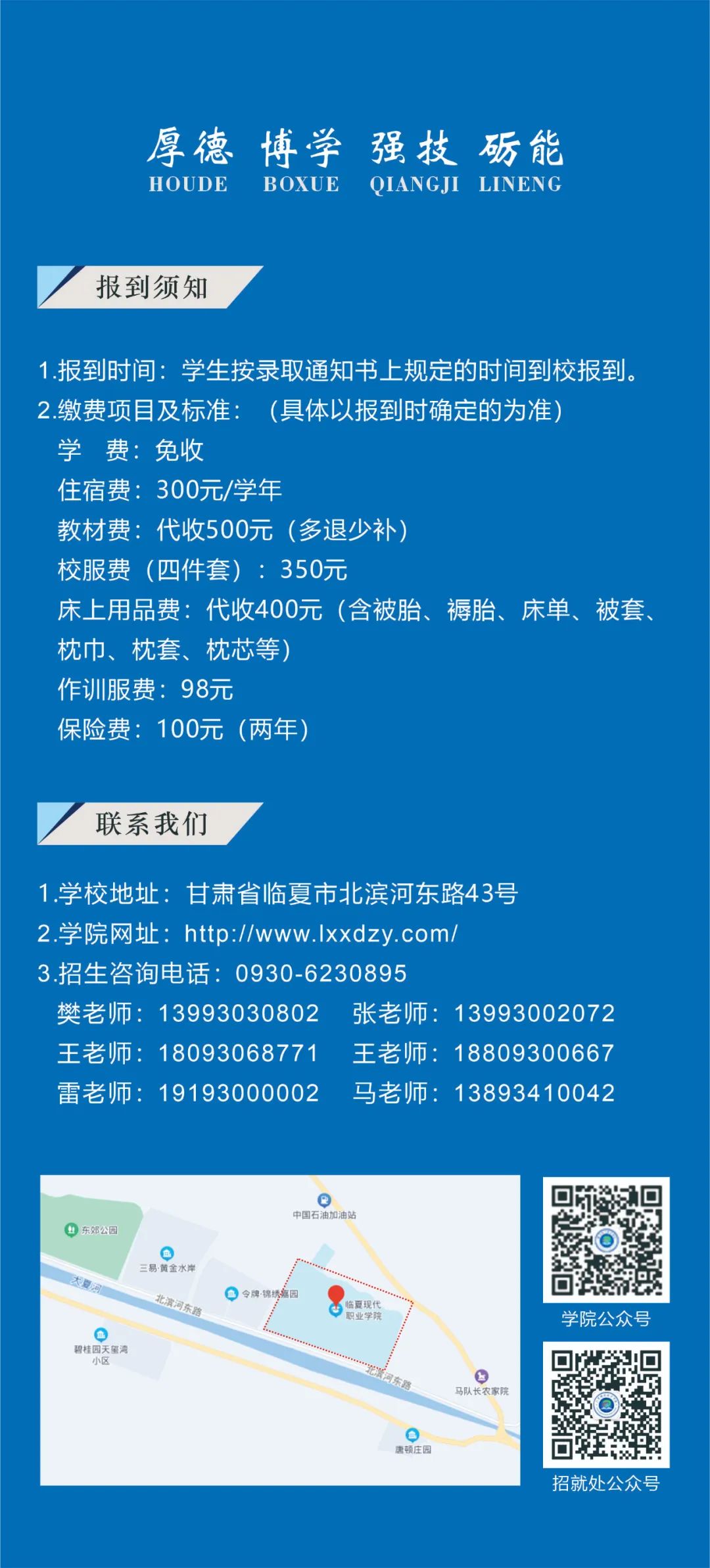 稿件来源:招生就业工作处-- END -- 厚德博学 强技砺能花儿之乡唯一高校 临夏现代职业学院欢迎您!审核:郭英编辑:房庆为宣传统战部临夏现代职业学院 网址:http://www.lxxdzy.com/公众号:临夏现代职业学院投稿邮箱:lxzy2015@163.com招生咨询电话:0930-6230895