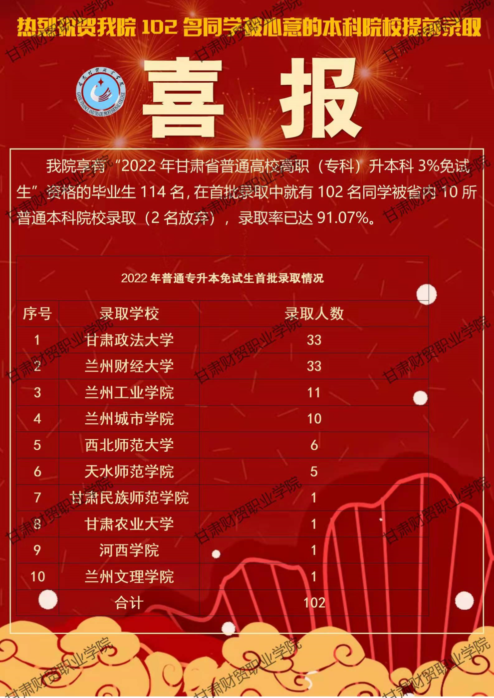 考生不参加文化考试,录取成绩以高中9门课程(信息技术除外)的学业水平考试等级赋分之和为准。赋分办法:学业水平考试等级A、B、C、D 分别赋分为4 分、3分、2 分、1 分。待学生报到入学后,由招生学校根据现有的校企合作模式, 结合现代学徒制试点专业、企业订单培养协议等技术技能型人 才培养需求,按照学生的特长和意愿,由学校、企业组织职业 适应性测试。各招生院校可针对具有体育、艺术等特长考生制 定专门测试办法,以提高体育、艺术特长考生报考普通专业的 积极性。(具体详见甘肃省考试院官网)