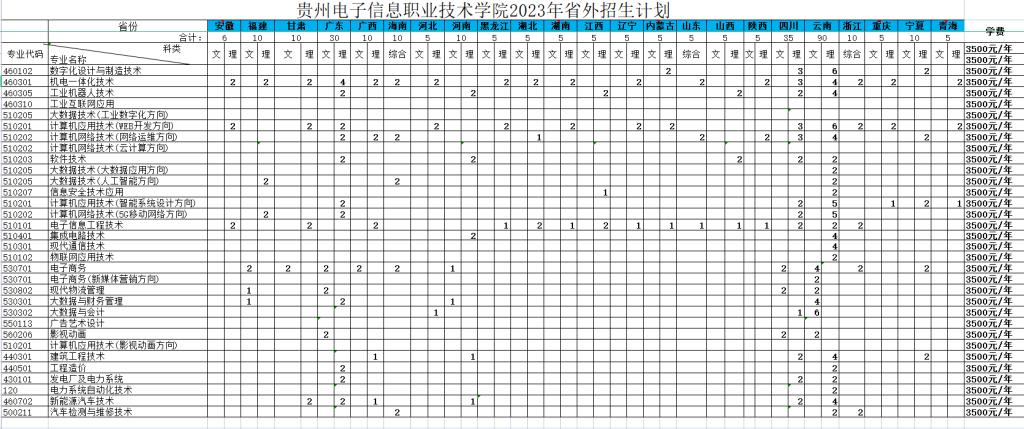 贵州电子信息职业技术学院2023年省外高考招生专业及计划数
