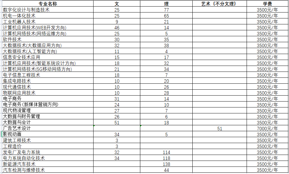 贵州电子信息职业技术学院2023年贵州省高考招生专业及计划数