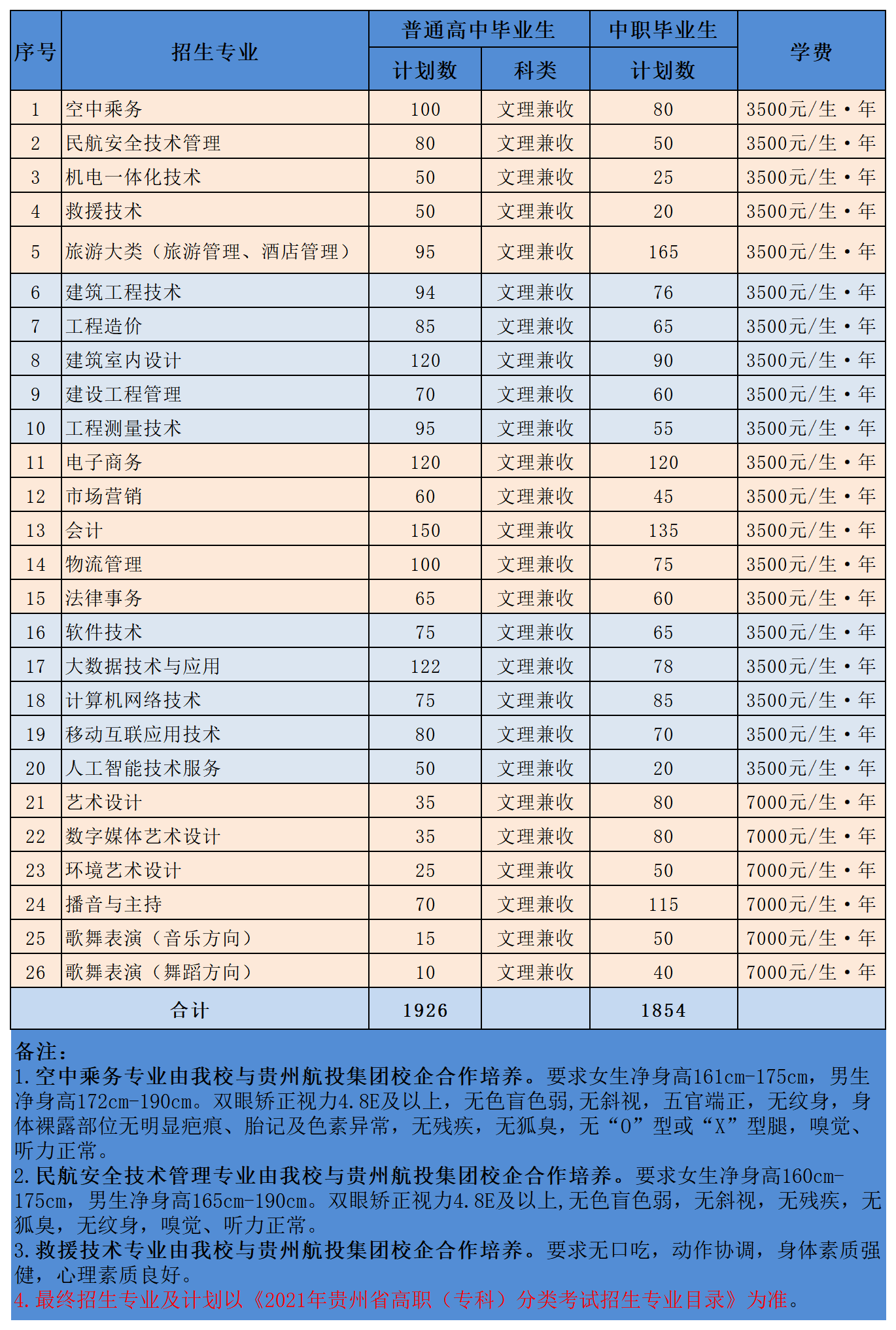 2021年分类考试招生专业及计划