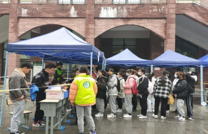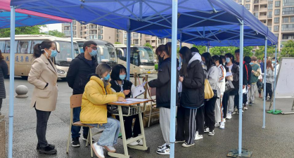 测试当天上午8:00,考生陆续来到学校南大门排队等候,凭身份证、准考生及考生承诺书有序进入学校,并在学校体育测试点进行考试。