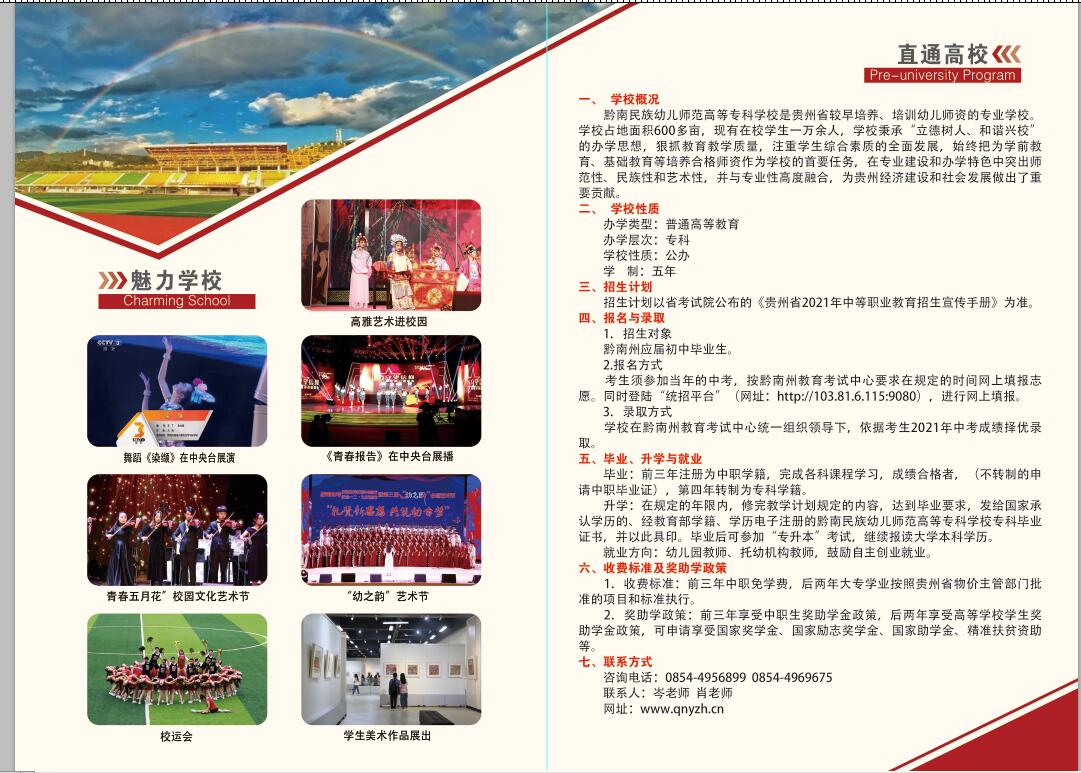 黔南幼专2021年五年制大专招生简章