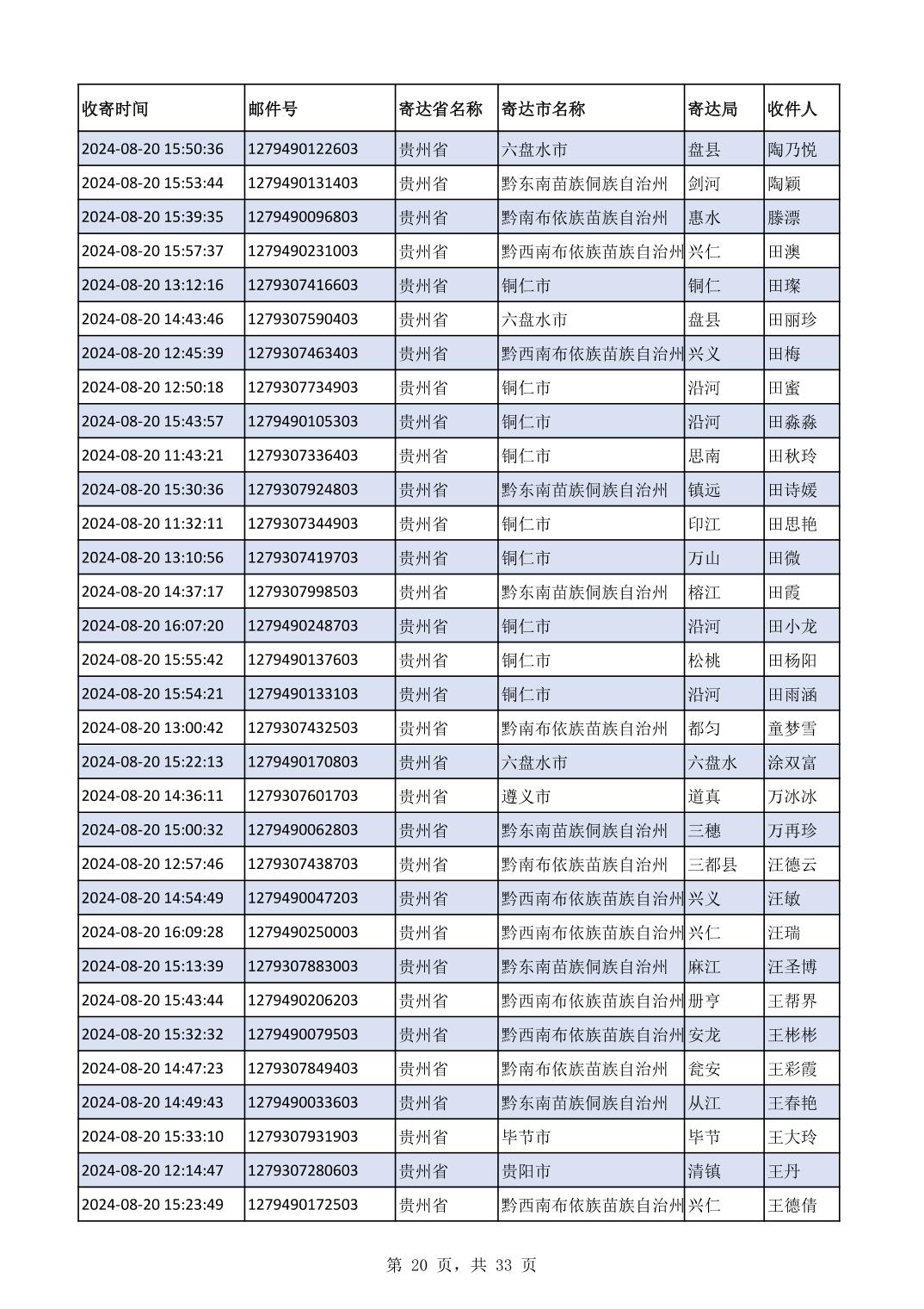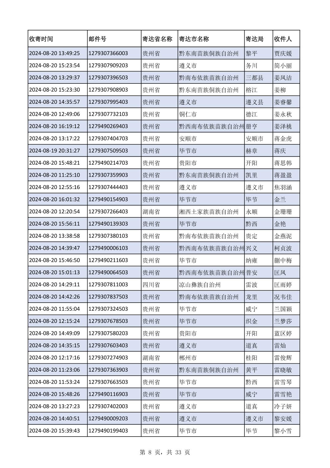 黔南幼专2024年录取通知书邮寄单号8月20日