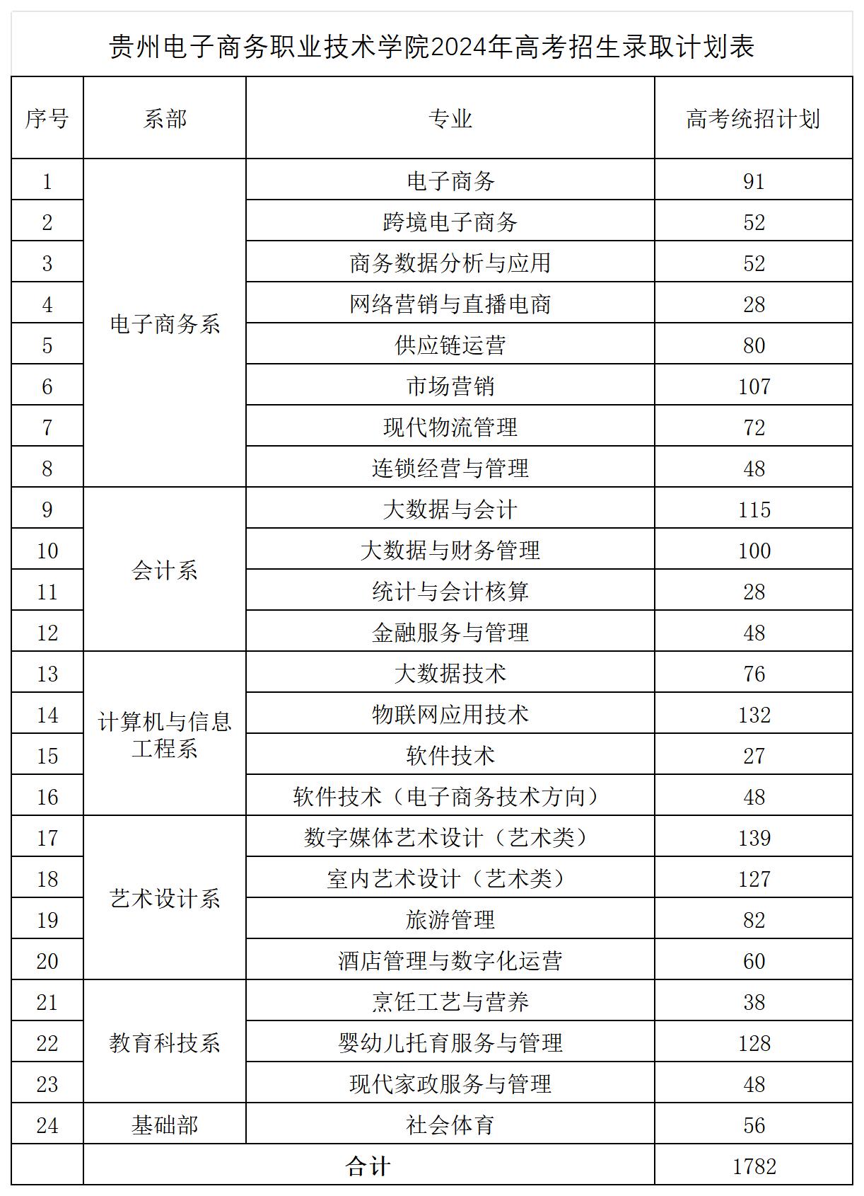 2024年招生计划以贵州省教育厅下达,各省招生部门公布为准。