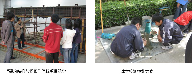 2. 工程项目融于课程教学,遵循职业能力发展规律、提高教学质量 积极开展项目教学探索,加强岗位能力培养。一方面开发建设了建筑施工类项目库、建筑检测类项目库、建筑管理类项目库应用于课程教学;另一方面依托与相关企业良好的合作关系,将实际的工程项目融入课程教学,实现教、学、做一体化教学。