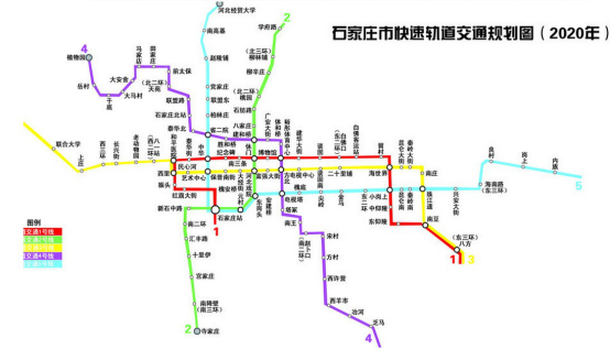 根据《石家庄市城市综合交通规划》,石家庄远景轨道交通线网采用“放射+网状”结构,共由7条线路构成,总规模208公里,其中轨道1号线、2号线、3号线为骨干线,5号线、6号线、7号线为外部连接线,4号线为填充线。远景轨道线网有效支持了都市区规划发展和功能组织,形成了各功能中心的快速客运通道,并覆盖了都市区重要客流走廊及大型客流集散点,为骨干运输功能发挥奠定了基础。