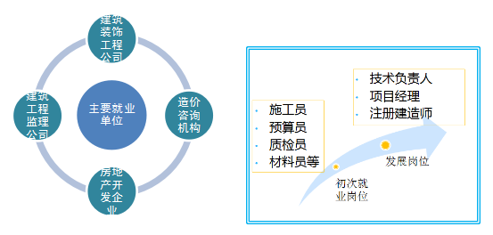 发展岗位:施工工长、项目经理、造价工程师、项目总工等。