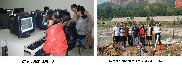 实训环节:地形测量实训、数字化测图实训、GPS原理及应用实训、控制测量实习、假期岗位认识实习、专业综合实训、顶岗实习等。