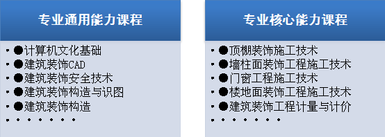 核心技术课:建筑工程计量与计价、工程量清单计价、水暖安装工程施工与预算、建筑招投标与合同管理、建筑工程预算软件、电气安装工程施工与预算、装饰构造与预算;